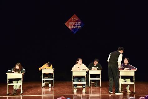 刘祥坠用“感谢、祝福和希望”三个关键词表达了对大家的深深祝福和殷殷期盼,他说“时间的脚步永不停息,奋斗的钟声铿锵有力”在即将过去的2019年,团学组织每位成员的辛勤付出,为促进团学改革、提升校风学风和服务员工成长成才等方面取得了累累硕果,创造了一个又一个辉煌;他希望同学们能够加强学习,注重个人的全面发展,努力做党的得力助手和后备军,向既定的目标不断努力奋斗。最后,他向同学们表达了新年祝福和期望,祝同学们新年快乐,学习进步!